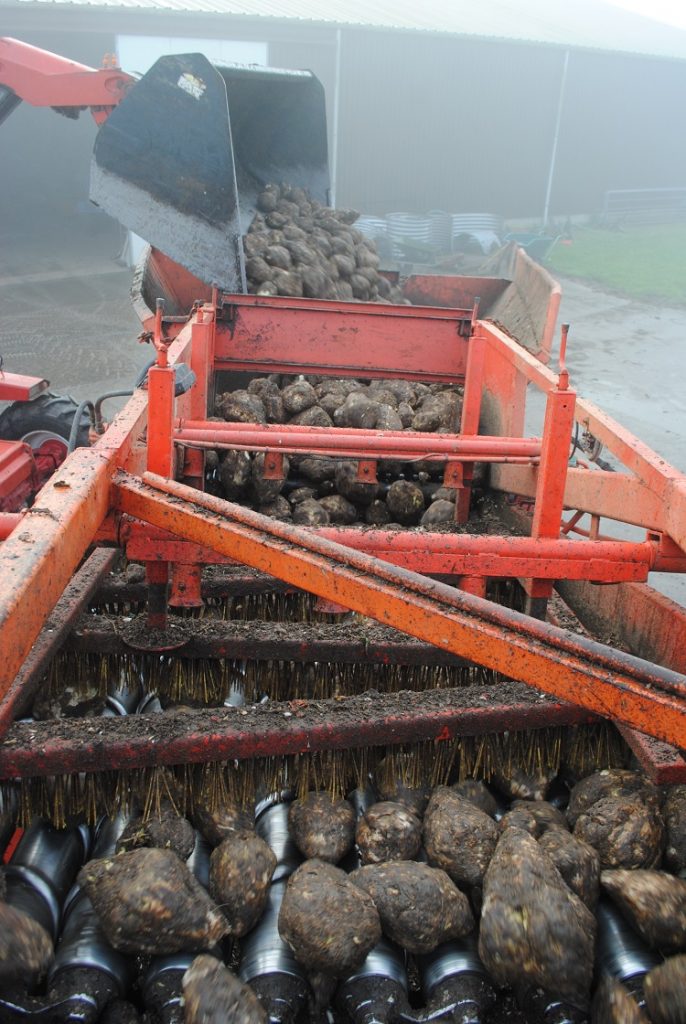 Langestraat reinigt de bieten voor ze het erf afgaan. Hij kan ze ook versnipperd leveren en door de mais inkuilen