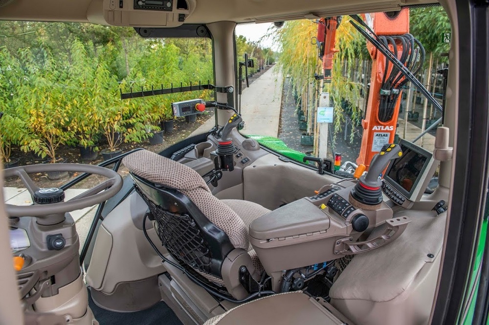 ‘Bij Vlastuin Mechanisatie leveren we onder meer laadkranen aan bedrijven in de boomkwekerijsector. In het hoogseizoen draaien deze laadkranen en hun bemanning veel werkuren, een prettige werkhouding is dan welkom. De laatste jaren speelt dit ergonomische aspect ook binnen de boomkwekerij een steeds grotere rol. Met onze Vlastuin Omkeerinrichting spelen we hier nu op in’, legt Van Dijk uit. ‘Inmiddels hebben we al verschillende nieuwe John Deere-tractoren geleverd met onze omkeerinrichting. Het is dan ook ideaal voor het werken in de bosbouw, akkerbouw of boomkwekerij.’