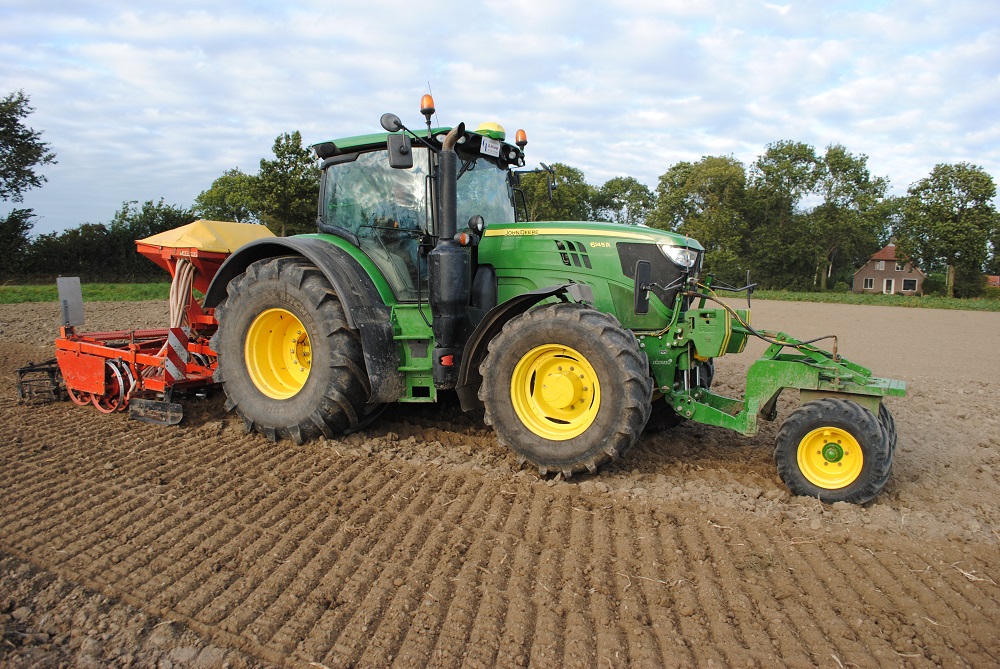 Loonwerker Gerard de Lange uit Ens is altijd op zoek naar hoe iets beter kan. Inmiddels heeft hij voor een egaal zaaibeeld van graszaad zijn John Deere 6145R uitgevoerd met een neuswiel voor het aandrukken van de grond en een verbeterde zaaicombinatie voor het mooiste zaaibeeld. “Uit ervaring bedenk ik waar nog verbetering mogelijk is. Ik bereken vervolgens niets, maar ga gewoon op het oog aan de slag. Op zoek naar een oplossing die werkt.”