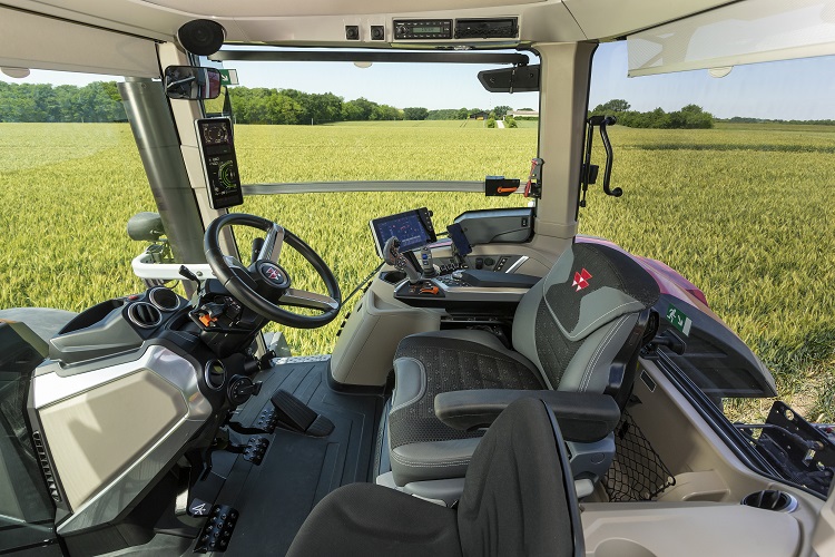 Door het dashboard te vervangen door de nieuwe digitale ‘MF vDisplay’-terminal, gemonteerd op de rechterstijl van de MF 8S-cabine, blijven alleen het stuurwiel en de Power Control-hendel voor de bestuurder over, wat goed zicht naar voren biedt over de slanke motorkap met wespentaille.