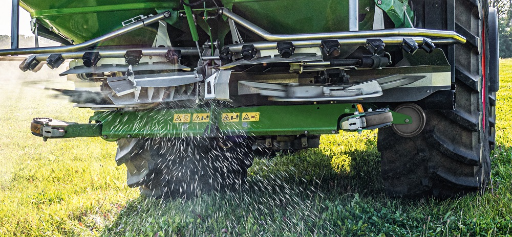 Naast het gebruik van het nieuwe BorderTS-scherm op velden met rijenculturen of speciale rijpadensystemen, kan het scherm bijzonder effectief worden gebruikt voor de eerste gift. Hierbij is het altijd van cruciaal belang dat de volledige hoeveelheid kunstmest exact tot aan de perceelgrens wordt gestrooid; zonder dat er kunstmest overheen wordt gegooid. Waarbij de groei van de overreden planten in het randgebied bij de eerste gift niet blijvend worden belemmerd.