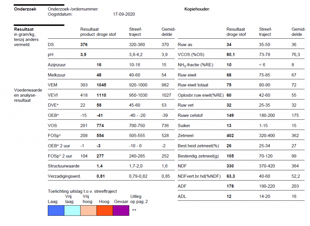 Uit analyse van 1.083 kuiluitslagen van snijmaisoogst 2020 uit heel Nederland zien we de effecten van een droge, hete zomer terug. Het zetmeelgehalte valt met 376 gram lager uit dan gemiddeld. De VEM ligt desondanks op een hoog niveau van gemiddeld 995 VEM per kg ds.