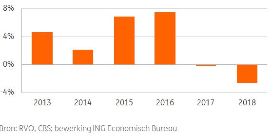 Voor de verwerkende industrie beperken de slechte oogst door de droogte in 2018 en het fosfaatplafond de melkveehouderij in de groei. Echter remt aan de vraagkant de lagere groei van de consumptieve bestedingen in retail en horeca de afzet. Daardoor is de verwachting dat de groei in 2019 zal halveren tot hooguit 1,5%.