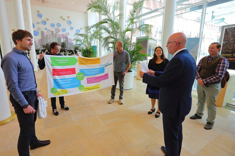 Zodoende hebben verschillende agrarische ondernemers het initiatief genomen tot een brief aan minister Staghouwer waarin ze hem vragen om subsidie-instrumenten voor kleinschalige waterstofproductie te ontwikkelen. Van Tilburg-Feiken, melkveehouder Jan Borgman en energieadviseur Rob Jacobs (L’orèl) hebben namens de ondertekenaars de brief op 13 juli in de foyer van het ministerie van Landbouw aangeboden aan minister Staghouwer.